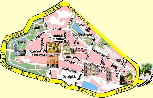 Auf der Strecke von der Luthereiche (Nähe Bahnhof) bis zur Schlosskirche (Wittenberg Information) findet man, wie auf einer Perlenschnur aufgereiht, alle wichtigen Gedenkstätten der Reformation. Wenn der Wittenberg-Besucher die Collegienstraße und die Schlossstraße entlang geht, begegnet ihm "Geschichte pur". Die wichtigsten Stationen dieser Strecke finden Sie hier auf den folgenden Seiten. Sie können der Reihe nach die Reformationsstätten besuchen oder direkt zu einzelnen Punkten über die Links oder die Karte gehen.